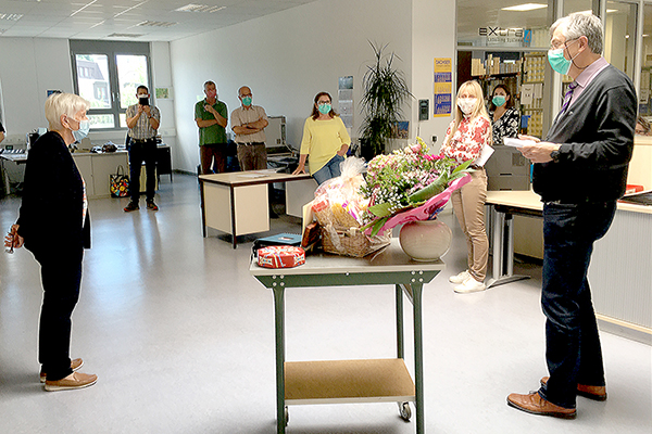 Birkenfeld, 02.06.2020. Der Beginn des bundesweiten Corona-Lockdown am 23. März 2020 bedeutet für Frau Zdenka Miksa das abrupte Ende ihres langen Arbeitslebens. Mehr als drei Jahrzehnte ist sie bis weit über das Rentenalter hinaus bei Ferdinand Eisele GmbH, Birkenfeld, tätig. Kurz vor ihrem 74. Geburtstag muss die treue Mitarbeiterin zu ihrem eigenen Schutz wegen des besonders für ältere Menschen riskanten Virus ihren Arbeitsplatz endgültig aufgeben. Nach den Lockerungen der Corona-Beschränkungen wird sie nun von der Geschäftsleitung und ihren Kollegen gebührend verabschiedet.