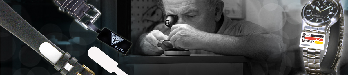 Etiketten zur Auszeichnung von Uhrgehäusen, Uhrarmbändern und Armbanduhren jeder Art